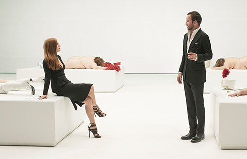 On le sent tout de suite : ce générique de début, c’est un leurre. Aussi inconfortable et vomitif soit-il, on le voit, c’est un leurre. Le fait de savoir que Tom Ford est aux commandes joue tout de suite dans le ressenti, et il y a de quoi au vu du spectacle proposé : rien de moins qu’un défilé de femmes obèses à poil, à la peau flasque et couverte de vergetures, qui s’exhibent dans des danses lascives d’un mauvais goût au-delà de l’imaginable. On pourrait se croire chez John Waters, mais non, on est chez Tom Ford, et du coup, on lâche une hypothèse : va-t-il enfin retourner sa veste ? Ce styliste autoproclamé cinéaste avec le clinquant défilé de mode A single man allait-il enfin vitrioler son liquide stylistique dans lequel nageait péniblement le culte de la beauté et des corps ? L’idée est séduisante, mais un simple contre-champ nous fait fissa redescendre sur Terre : tout ceci n’était en fait qu’une exposition artistique, où la performance redevient alors propriété de la sphère bobo. Le leurre était réel, mais hélas dans le mauvais sens. Que Ford ait eu envie de tacler le culte de l’apparence ne sera ici qu’une théorie, appliquée de façon maladroite quand elle ne dérivera pas carrément vers un exercice de style des plus grossiers. Après un premier essai discutable, Nocturnal Animals devait enfin nous permettre de résoudre l’énigme Tom Ford : est-il cinéaste ou non ? La réponse apportée prête autant à la confusion qu’à la consternation.