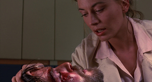 Rien qu’avec une intrigue pareille, on sent le nanar grotesque pointer le bout de son pif. Film de fantômes sans en être réellement un, film fantastique avançant à rebrousse-poil de ses propres conventions, film d’angoisse qui crée moins la frousse que la rigolade, Nomads valide à peu près tous les critères requis pour se voir tamponner le qualificatif « ovni improbable » tous les deux mètres de pellicule. Déjà sacrément pétée du ciboulot dans son postulat, l’intrigue du film se tarabiscote encore plus au travers d’une myriade de flashbacks, de réveils brutaux en veux-tu en voilà et de sous-intrigues parallèles à la mord-moi-le-nœud, censées faciliter la progression narrative là où elles se contentent de la compliquer inutilement. Perfusée à un doute quasi permanent sur les perceptions de ses deux héros, cette sorte de descente aux enfers mentale a bien entendu sa propre logique temporelle : d’un côté un mort qui explore un mystère, de l’autre une vivante qui tente d’en trouver le sens en revenant sur les lieux visités par le mort. Le hic, c’est que l’on se demande sans cesse si McTiernan souhaitait vraiment entretenir le mystère au-delà de la projection, et tout particulièrement en raison d’une fin carpenterienne dont on finit par se demander si elle n’avait pas pour but réel de nous laisser dans un état de frustration. Mais nul doute que la réponse est déjà dans la question.