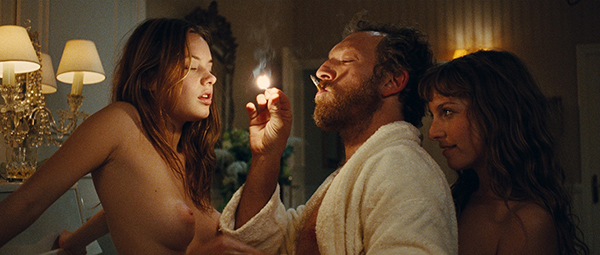 Un exemple précis est à relever au début du film, lorsque Patrick interpelle Rémy sur sa position sociale : « T’es sujet au syndrome de la soumise ! Quand un jeune homme grandit au milieu d’un nombre de femmes trop élevé, il devient soumis, voire même pédé dans la plupart des cas ! ». Un dérapage verbal ? Bien sûr, mais celui-ci n’a rien de gratuit : Gavras s’en sert surtout pour cristalliser la virilité absurde des rapports masculins sans pour autant la dénoncer, et utilise même ce genre de provocation gratuite pour enrichir le rapport de dualité entre les antihéros (en disant une phrase pareille à Rémy, Patrick ne fait que le provoquer pour le sortir de sa torpeur et de son asservissement social). Deux personnages qui, à bien des égards, dessinent durant tout le film un vaste champ lexical de la dualité : père/fils, maître/disciple, ami/amant, double/Némésis, etc… Un jeu de rôles des plus imprévisibles que Gavras laisse activé sans jamais stopper le mécanisme, offrant ainsi une totale liberté d’action à ses prodigieux acteurs. Sur ce point-là, si Vincent Cassel semble clairement à l’aise dans ses pompes pour incarner les dandys décadents (son mimétisme avec le jeu de Depardieu dans Les valseuses est assez inouï), Olivier Barthélémy lui chipe sans cesse la vedette : on reste sidéré par son visage inquiétant, soufflé par son charisme de tête brûlée et violenté par les émotions fortes qui le taraudent.