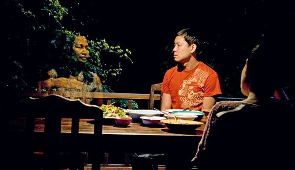 Bon, certes, il est peut-être un peu utopique de dire cela, d’autant qu’il est inévitable que certains n’adhèreront pas au projet et resteront ainsi sur le bord de la route, incapables de pénétrer cette jungle de sérénité que le film nous invite à explorer. Tant pis, on reste enclin à rêver, puisque c’est le sujet même du film. D’entrée, il est aussi nécessaire de faire un petit rappel pour les néophytes : le cinéma de Weerasethakul fonctionne avant tout sur un registre à la fois contemplatif et introspectif. Son art est celui d’un homme pétri de cultures et d’imagination, fortement attaché au monde qui l’entoure et aux forces mystérieuses qui le régissent. A travers des films expérimentaux où la narration classique est bannie au profit d’une lente description du quotidien, d’où émanent quelques fantômes de contes et de légendes, lesquels font directement référence à tout un pan du cinéma de genre, le spectateur ressent presque la sensation de s’immerger dans un bain, voire de vivre une séance d’hypnose, où même les gestes les plus simples du quotidien laissent couver quelque chose de plus étrange. On peut y voir là une analogie avec le travail d’un certain David Lynch, attaché à brouiller les pistes cartésiennes pour mieux déstabiliser son audience : le rêve et la réalité sont quasiment fusionnels, à supposer que leur interconnexion n’est pas déjà une réalité en soi, et Weerasethakul s’attache à faire en sorte que tout paraisse crédible, que tout soit vivant. Comme dans ses précédents films, Oncle Boonmee travaille une fois de plus ce corpus d’idées, mais de façon plus diffuse, se limitant dans un premier temps à illustrer quelque chose d’infiniment rare dans le cinéma contemporain : le calme. Une notion importante qui donne au spectateur un vrai pouvoir, celui d’être disponible et de laisser travailler ses sens.