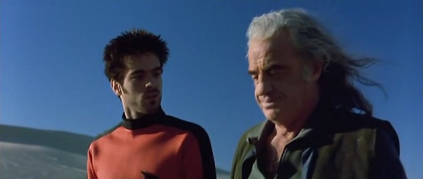 De cet hallucinant décor digne d’une BD, noyé sous les sensibilités africaines et orientales (l’amour de Klapisch pour le caractère cosmopolite de Paris n’a jamais été aussi explicite qu’ici), se dégage l’idée d’un futur bigarré qui n’explique pas sa logique (d’où vient tout ce fichu sable ?!?) mais dont le contenu métaphorique se fait plus limpide que jamais. Dès la confrontation du héros à sa future descendance éclate l’angoisse d’un enfantement raté, d’un corps qui s’effacerait petit à petit jusqu’à s’évaporer en poussière. D’où la symbolique du sable, moins revanche du primitif sur la technologie que signe des mille hypothèses non concrétisées dans (et par) une vie. Et pendant ce temps dans le passé (rires), la fête bat son plein entre dragues foirées, nuisances sonores, intrus survoltés, dégâts matériels, poudre dans le pif et réplique culte de Jean-Pierre Bacri (« Mollo sur le destroy ! »). Ce va-et-vient entre l’allégresse d’une giga-teuf punk et la sérénité d’une mer de sable, Klapisch le gère sans le gérer vraiment, préférant jouer des irrégularités de rythme et de tonalité pour mieux envoyer paître tout point de vue orienté et assumer le fait d’investir une « cour de miracles » à double visage. Entre ses mains, « bazar » et « bizarre » sont bien plus que des mots qui riment. Si sujet il y a, il préfère le traiter comme un centre de gravité autour duquel il s’agit de tourner plus ou moins vite, tel un art de la fuite et de l’incertitude qui se fait corollaire de l’état d’esprit de son jeune héros flemmard et dérouté. Et pour ce qui est de choper des aiguillages optimaux pour rendre la mécanique zinzin au possible, il n’a qu’à se baisser pour les ramasser. Un joli montage parallèle de deux danses intergénérationnelles (d’un côté, un vieil homme et sa jeune mère ; de l’autre, une jeune femme et son arrière-grand-père du même âge), un gag osé qui fait mouche (le petit-fils quinqua pourchasse son papy de vingt piges le fusil à la main en lui ordonnant d’« aller niquer mémé » !), une BO qui fait cohabiter la techno vénère avec les sonorités orientales… Sans parler du plus fort, à savoir l’inversion du rapport père/fils. Faire de Jean-Paul Belmondo – ici dans le dernier grand rôle de sa carrière – le fils de Romain Duris sonne comme une idée de génie, tant la candeur enfantine du premier contraste avec la sécheresse anxieuse du second.