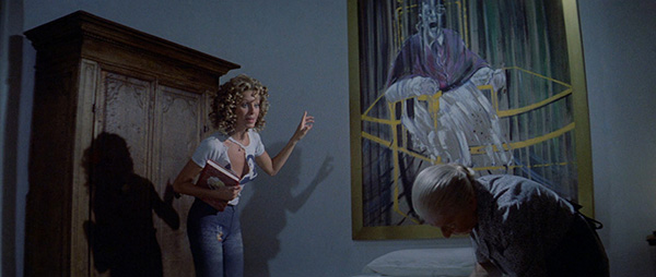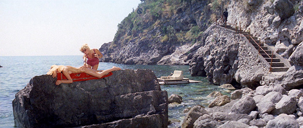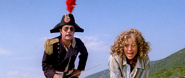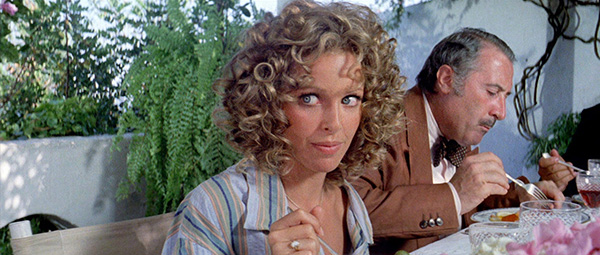 Au-delà d’une photographie solaire et idyllique que l’on devine propice à toutes les folies légères (la composition du Scope est à tomber), le ton débridé et lubrique de Quoi ? tient avant tout sur le fait que les personnages ne pensent qu’au sexe. De par son corps parfait et exhibé sans gêne, Nancy devient objet d’étude et de convoitise pour des hommes ne jurant que par les seins et les fesses (ce qui fait souvent l’objet de débats entre eux). Témoignage d’une époque fofolle post-68 où l’insouciance ne laissait pas de place au sérieux ? Il y a de ça, c’est sûr, mais l’attrait de Polanski pour le surréalisme fait en sorte que chaque situation puisse évoluer vers un point critique, coincée entre la légèreté et le malaise. La maison elle-même – en réalité la villa du producteur Carlo Ponti – n’a déjà rien de familier, sa façade lorgnant aussi bien du côté de la villa grecque que du temple inca, et ses intérieurs laissant aux escaliers et aux perspectives architecturales l’occasion de dessiner un pur dédale onirique. Quant aux énergumènes qui s’y agitent, osons parler d’un underworld si cramé par le soleil et les pulsions qu’il tourne en boucle dans sa bulle. Le temps s’est donc arrêté, et tout se répète, des apparitions (un couple de femmes nues qui traverse la terrasse) aux actions (un acte sexuel pratiqué par une peluche géante) en passant par les mots (le neveu du maître de maison a l’air de répéter chaque matin les mêmes phrases à Nancy). Tournant autour d’un vieux salace en phase d’agonie (Hugh Griffith), la faune de ce conte barré tombe le masque : un ex-maquereau sadomaso et fétichiste des nibards (Marcello Mastroianni) qui adore se faire fouetter déguisé en tigre, une infirmière acariâtre qui utilise de la mousse à raser comme insecticide, une certaine « Sucette » qui pratique la sodomie à la chaîne, un prêtre zinzin qui ment sans arrêt, un serviteur légèrement pompette, un obsédé sexuel nommé « Moustique » qui aime « piquer avec son gros dard » (c’est Polanski lui-même qui l’incarne !), etc… Et à la fin, notre héroïne quitte ce monde de cochons (au sens figuré) en sautant à poil dans un camion de cochons (au sens propre)… Bien, bien… Et sinon, vous, ça va ?