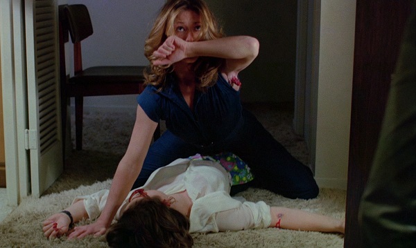 Le physique idéal de girl next door qui caractérise Marilyn Chambers compte pour beaucoup dans l’incroyable richesse analytique de Rage. Elle devient ainsi la première héroïne tragique de la filmo de Cronenberg, à mi-chemin entre la tueuse incapable de réprimer sa nature et la victime téléguidée par un corps en transformation. Parce qu’au fond, Rage ne parle que de cela : un dérèglement causé par une science terroriste qui reformate le corps en objet d’interrogation. Rose, une accidentée de la route, sert ici de cobaye involontaire à une greffe de peau inédite, pratiquée en toute illégalité par un docteur du nom de Keloid (jeu de mot phonétique avec le nom d’une tumeur fibroblastique !). Bien sûr, l’expérience tourne mal et provoque une étrange mutation : Rose se retrouve avec un étrange orifice situé au creux de son aisselle d’où sort un dard phallique et rétractile, lequel lui permet de pomper le sang de ses victimes en les étreignant et de leur inoculer une violente pulsion de rage. Vampirisme et toxicomanie sont donc les pistes analytiques les plus évidentes qu’offre cette nouvelle épidémie, avec une jolie dose de psychanalyse en prime. Dès l’apparition du nom de Freud sur un livre dans l’une des premières scènes, il est permis d’envisager que la maladie de Rose ne soit pas tant corollaire de cette greffe de peau ratée que des séquelles traumatiques de son accident. Rage, un film freudien ? Cela se fait sentir au vu d’événements horribles qui font se superposer la jouissance et la pulsion meurtrière chez un individu, qui plus est avec une sexualité nouvelle qui active un processus de réinvention de son propre corps et de son rapport à l’Autre. En outre, voir Marilyn Chambers passer à côté d’une affiche du film Carrie dans une scène n’est pas un simple clin d’œil à l’actrice qui devait initialement jouer son rôle. C’est parce que les deux films parlent tous les deux d’une jeune femme terrorisée par les assauts de son propre corps. Et Rage atteint son meilleur niveau lorsque Cronenberg dissèque à l’os cette dichotomie victime/prédatrice qu’incarne son corps central : étreinte avec n’importe qui (y compris une vache !), sevrage en position fœtale sur le carrelage, attaque mortelle filmée comme un acte d’amour, empathie dans la monstruosité, mort au bout du fil. Avec, en guise d’amertume finale, une contradiction à échelle humaine que le puritanisme ambiant traite comme un déchet.