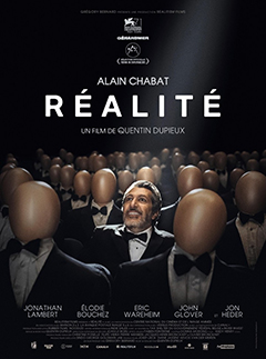 Cela dit, dans son optique de n’en faire qu’à sa tête, quitte à viser le doigt d’honneur ou la perte totale de repères, Dupieux joue clairement dans une autre cour de récréation. Réalité n’a rien d’un puits à gimmicks cintrés, tout juste bon à mouliner de la situation surréaliste ad vitam aeternam jusqu’à se mordre lui-même la queue. Il est avant tout une sorte de miroir imbriqué de notre propre condition d’animal social soumis au largage perpétuel, confronté en boucle à des trous noirs existentiels et cérébraux – est-ce un hasard si le bouquin que lit ici Elodie Bouchez s’appelle Endless mirrors ? Ce que l’on voit ici semble éclater les frontières du portnawak, mais ne cesse jamais de renvoyer à du contemporain : un présentateur maniaque qui s’imagine couvert de boutons (alors que non, « c’est juste une crise d’eczéma, mais à l’intérieur de la tête ! »), un film qui existe déjà sur l’écran alors qu’il n’est même pas encore tourné (à l’époque des plagiats bâclés et des remakes tous azimuts, c’est à peine étonnant), une gamine déterminée à voir le contenu de la fameuse vidéo bleue qui lance et referme l’intrigue (une sorte de boîte de Pandore similaire à celle de Mulholland Drive), un cinéaste qui étire ses plans pour capturer le moment où une actrice s’endort (faut-il filmer le « rien » pour atteindre le « vrai » ?), un réalisateur cherchant l’émotion ultime dans l’expérimentation du cri parfait (et là-dessus, Chabat reste le plus sobre des distributeurs à fous rires), ou encore, tout bêtement, des animaux empaillés qui semblent encore plus vrais que les vivants (question de regard).