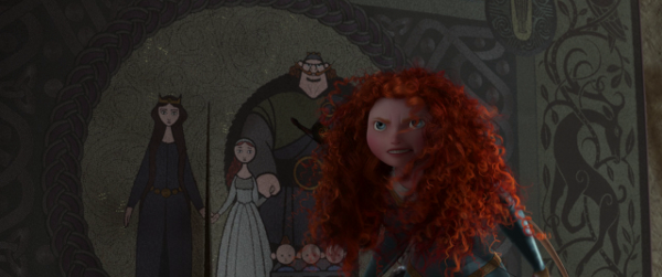 Vous l’aurez compris, Merida n’a en réalité pas grand-chose à voir avec Raiponce. Pas plus qu’avec Ariel, dont la prétendue autorité du père ne se dessine concrètement qu’au gré de la destruction d’objets terrestres lui appartenant, ni même avec une Jasmine qui, elle, préfère tout simplement fuguer. Stoppons les comparaisons : Merida ne ressemble à personne d’autre qu’elle-même. Elle se rebelle contre le poids des traditions, elle se révolte « en réaction à ». Elle ne cherche pas à échapper à son destin à proprement parler, mais à le modifier. Une nuance infime qui préfigure d’un modus operandi basé sur la seule soumission à approbation d’un parent qui, elle le sait, fait figure d’autorité. L’objet de son courroux ? Les obligations inhérentes à son statut même, personnalisées par l’omniprésence de sa mère qui n’agit plus comme telle. Cette dernière n’a d’interaction avec sa fille que pour la corriger, lui signifier ce qui ne va pas : elle ne l’écoute pas quand Merida lui raconte ses exploits de la journée, ou lui rappelle de sourire plutôt que de prendre les devants et lui dire ce qu’elle a sur le cœur, peu avant le tournoi de tir à l’arc. Une difficulté manifeste à communiquer que vient confirmer un montage alterné rassemblant les deux femmes sur ce qu’elles croient être source du problème : l’incapacité de l’autre à écouter. Et tout le métrage de s’articuler autour de conflits d’égos dont seul l’égoïsme devient moteur du récit.