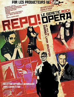 À quoi un film doit-il d’être qualifié de « culte » ? A sa façon de définir un genre à lui tout seul ? A l’empreinte indélébile qui laisse dans l’esprit des uns et des autres ? Aux débats et aux controverses qu’il n’en finit pas de susciter chez des fans et des détracteurs ramant à se mettre d’accord ? Faites votre choix. Toutefois, si l’on s’en tient à nos souvenirs de cinéphile, il faut remonter en 1975 pour trouver un film qui aura su donner à ce mot ses lettres de noblesse : The Rocky Horror Picture Show de Jim Sharman, opéra-rock aussi déviant que déjanté, rempli à ras bord de travelos hurleurs, d’éphèbes paumés, de bossus danseurs, de lingerie fine et de références aux vieux films d’horreur. Au-delà d’une proposition de cinéma qui avait le bon côté de ne ressembler à rien, il fallait surtout y voir un grand écart parfaitement assumé entre le Grand-Guignol et le musical sous acide, riche d’une science de l’audace et du mauvais goût capable de transcender les époques et les genres. Et par la suite, hormis un mémorable Phantom of the Paradise signé Brian De Palma et le trop méconnu Reefer Madness d’Andy Fickman, peu de films furent capables de réitérer le même exploit. De là à dire que Repo! The Genetic Opera aurait sa place dans cette liste, il y a un fossé qu’on ne franchira pas. Tout comme il serait bien difficile de prétendre qu’en un seul film, son illustre réalisateur Darren Lynn Bousman ne porterait plus aussi bien son nom de famille. Révolution conceptuelle pour les uns, précis de torture auditive pour les autres, cet ovni totalement lézardé de la cafetière va diviser, mettre cornées et tympans à très rude épreuve, jusqu’à valider au centuple cette idée pas si bête que le hasard et l’inconscience pèsent très lourd dans la création d’une œuvre culte. Osons donc le dire : vous n’êtes pas prêts pour Repo! The Genetic Opera. Parce qu’au départ, on ne trouve pas les mots pour décrire un truc pareil.