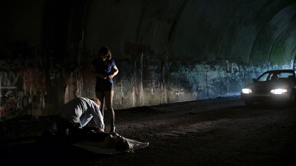 Ce qui donne son côté « plein » au film découle paradoxalement de la facture numérique extrêmement simple qui le constitue, en soi assez proche du style épuré et translucide d’un Steven Soderbergh acquis à des jeux de pure surface et de flux diffus. Inracontable en l’état, le scénario de Steven Gaydos (déjà coscénariste d’Iguana) peut au moins se prédéfinir comme un layer cake narratif, une mise en abyme à plusieurs niveaux de lecture – on en relève cinq – avec un film sur un film dans un film, où un jeune cinéaste semble s’égarer dans une double passion – pour son projet et pour son actrice principale. Viennent s’y greffer peu à peu des bribes de film noir et de thriller méta, dans la mesure où l’actrice en question joue (devient ? était déjà ?) la femme fatale d’un fait divers ayant inspiré la fiction du film. Comme la route est incluse dans son titre, Road to Nowhere se projette assez aisément comme le Mulholland Drive de son auteur, à ceci près que le tracé d’un inconscient en zigzag façon Lynch laisse la place à un découpage plus ou moins bidonné dans sa linéarité, faisant se relier diverses échelles de récit et de réalité sans qu’aucun repère ne soit affiché au passage de l’une à l’autre. Une fois fini le générique, le récit met alors un point d’honneur à disposer ses strates. Premier niveau : un fait divers relatant un scandale financier qui se sera conclu par un double suicide, celui du politicien corrompu Rafe Taschen et de sa mystérieuse maîtresse Velma Duran. Second niveau : un script rédigé à partir de ce fait divers et conclu par un double faux suicide visant à maquiller la disparition de Taschen et Velma – les « faits » sont donc réécrits sur la base de l’hypothèse d’un coup monté. Troisième niveau : une suspicion toujours plus renforcée et maladive de l’assureur Bruno Brotherton (Waylon Payne) vis-à-vis d’une jeune actrice Laurel Graham (Shannyn Sossamon), laquelle ne s’efforcerait pas d’incarner Velma à l’écran mais serait en réalité la vraie Velma. Quatrième niveau : le réalisateur du film, Mitchell Haven (Tygh Runyan), qui, via le DVD qu’il montre à la blogueuse sexy Nathalie Post (Dominique Swain, la Lolita d’Adrian Lyne), aurait inclus dans son film cette hypothèse d’adéquation entre le personnage et l’actrice. Cinquième niveau : Monte Hellman lui-même, invitant sa propre réalité de tournage le temps d’un plan furtif en contrechamp de Mitchell qui braque soudain sa caméra vers l’envers du décor – ce parti pris relève moins d’un registre pirandellien à la Quentin Dupieux que d’un lézardement du quatrième mur digne de cette combustion de pellicule qui clôturait Macadam à deux voies.