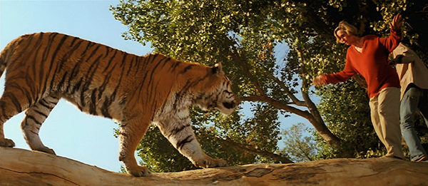 D’un côté, on encouragerait presque les âmes sensibles à regarder le film sans le son, histoire d’y apposer des voix parodiques façon Vidéo Gag sur les bouches des acteurs et les réactions des animaux – on a essayé et ça peut devenir bidonnant. Mais rien n’interdit de regarder Roar avec les terminaisons nerveuses au repos, tant son jeu de cache-cache dans un ranch assiégé par des fauves (imaginez Assaut de John Carpenter délocalisé chez les résidents carnivores du zoo de Thoiry !) se coltine un premier degré hilarant parce que totalement à côté de la plaque. Rien que le décor de la maison vaut le détour : ni plus ni moins qu’un décor de jeu vidéo, rempli d’ouvertures et de chausse-trappes, où tout le monde tente de fuir la menace et de se cacher comme dans un bon vieux Resident Evil, et ce avant qu’une moto ne grimpe sur le toit pour faire un vol plané au ralenti jusque dans la rivière ! Les autres péripéties rejoignent assez bien cette approche d’un cirque de l’extrême trop too much pour ne pas être lu de travers. Mention spéciale à un type qui joue les apnéistes dans un tonneau rempli d’eau (et bien sûr, les fauves ont visiblement très soif !) et à une Tippi Hedren assommée qui se retrouve soudain recouverte de miel (miam !). Ajoutez à cela quelques considérations sans intérêt sur le roi de la savane ou les amortisseurs de jeep, des animaux qui saccagent tout ce qu’ils touchent (bateau, mobilier, skateboard…), des gags qui n’ont pas l’air de l’être (rien ne vaut un bon parapluie pour distraire une femelle tigre !) et une réplique finale hilarante en guise de digestif (« Ça vous plaira de vivre ici ? – Ah ben oui, on y sera bien mieux qu’à Chicago ! »). Sacré bazar que voilà, lequel s’achèvera en 1981 par un bide XXL au box-office et par le divorce du couple vedette… Ainsi naquit Roar : un cauchemar pour ses créateurs, une hallucination pour ses visiteurs. Une sorte de parc d’attractions suicidaire où l’homme a voulu dépenser sans compter pour un rêve illusoire, et où, par un enchaînement de désastres découlant d’un leurre de maîtrise, la nature a très vite repris le pouvoir… Tiens, tiens…