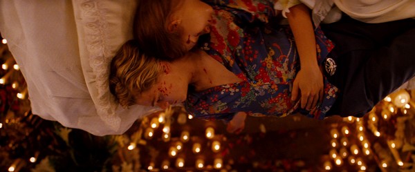 Au fond, il n’est pas trop difficile de déceler ce qui rend Roméo + Juliette si abouti et si apte à supporter des visions répétées. L’art au sens large étant fondé sur le contraste et les fascinantes images mentales qui peuvent naître de lui, Baz Luhrmann enfonce ici le clou d’un opéra avec les curseurs à fond sur le too much pour que les fulgurances les plus fortes soient avant tout fondées sur l’apaisement et, bien sûr, l’amour. D’où le fait que, malgré tant de fureur et de violence, les moments les plus inoubliables du film se résument à des images, des éclats, des fragments de magie. Une jeune romantique déguisée en ange qui observe le feu d’artifice depuis son balcon. Deux regards qui se croisent à travers un aquarium. Une douce étreinte dans une piscine ou sous une couette. Le désespoir de Juliette qui la verra commettre un acte insensé par amour. Les pleurs de Roméo face à un soleil couchant chargé de sens. Et bien sûr, au-dessus de tout, un climax final dévastateur où le sacrifice amène la paix et où l’amour trouve son éternité dans la mort. On a beau connaître par cœur cette histoire universelle, jamais ne l’avait-on vue aussi belle et aussi déchirante à l’écran.
