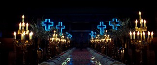 On en oublierait presque d’évoquer le casting, pièce angulaire d’un film qui a bâti une large partie de son succès et de sa réputation sur son duo principal. Pas encore star de Titanic mais déjà auréolé d’un statut d’icône glamour à la River Phoenix (la ressemblance est d’ailleurs frappante dans les premiers plans où il apparait), le beau Leonardo DiCaprio transformait ici Roméo en simili-James Dean, rebelle romantique et sans cause, avec chemise hawaïenne et cigarette à la bouche, rédigeant des poèmes et traînant son spleen face aux vagues et au coucher du soleil. Une prestation habitée, fiévreuse, souvent impressionnante, qui lui aura même valu un Ours d’argent du meilleur acteur au Festival de Berlin. Actrice trop rare et sous-employée, Claire Danes faisait figure d’incarnation rêvée de Juliette, visage d’ange et regard éthéré (parfait raccord avec son déguisement pour la fameuse scène du coup de foudre). Les deux acteurs arrivent en tout cas à paraître remarquablement sobres au regard de toute la smala qui les entourent, composée d’acteurs confirmés qui se sont visiblement mis un peu trop de poudre blanche dans le pif. A titre d’exemples, notons que Diane Venora surjoue comme une diva à fond dans l’emphase, que Paul Sorvino fait déjà montre ici de son aptitude à cabotiner comme un cochon dans un écrin d’opéra rococo (ceux qui ont vu Repo! The Genetic Opera, suivez mon regard…) et que John Leguizamo, toujours en mode « Benny Blanco from the Bronx », en fait lui aussi des caisses, rendant son Tybalt plus psychotique que flamboyant. Ce choix d’une interprétation outrancière se cale à merveille en digne wagon dans ce gigantesque train d’extravagance auquel se résume le film. De même que sa sensationnelle bande originale, combinant de belles envolées de gospel à des artistes pop et modernes (Garbage, Radiohead, The Cardigans, Des’ree, Kym Mazelle…), traduit le désir de Luhrmann de rester ancré dans le monde de la rue et de fluidifier le montage au lieu de commenter l’action.