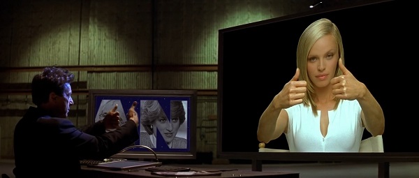 De la science-fiction ? Think again. Signalons d’abord que le film s’inspire des travaux du professeur Raymond Kurzweil – icône mondiale du transhumanisme – et de son alter-ego virtuel Ramona. Rappelons aussi que deux ans avant la sortie du film, on voyait déjà dans Gladiator des images du défunt acteur Oliver Reed tournées après sa mort. Et ne parlons pas de ces récentes polémiques en cascade sur The Irishman et Star Wars vis-à-vis de ce remodelage virtuel d’acteurs réels qu’il s’agit de rajeunir ou carrément de ressusciter. Sur cette crainte légitime d’une OPA fatale lancée par le numérique sur l’analogique, S1M0NE invite à se la jouer cool et zen au détour d’un constat sur la façon qu’a le 7ème Art d’appréhender et de maîtriser la technologie : si cette dernière rencontre un artiste aussi intègre que visionnaire, alors peu importe la « réalité » du sujet filmé du moment que la prestation offerte est considérée comme valable. Le concept fou au cœur du scénario de Niccol a ainsi de quoi filer le vertige, quitte à jeter carrément au feu vingt ans de délire masturbatoire sur la performance capture en tant qu’avenir du langage cinématographique. Plus besoin de recourir à des acteurs pour en numériser ad nauseam le jeu et les expressions faciales, vu qu’une actrice toute neuve et très docile fait ici tout le boulot à leur place : pas de caprices de diva, pas d’exigences mirobolantes, elle fait ce qu’on lui dit de faire, elle joue très exactement comme on le souhaite (parfois même à la manière de), et surtout, quand elle tourne un film, elle se donne corps et âme… alors même qu’elle n’a ni corps ni âme ! C’est que cette fameuse Simone n’est autre que la création virtuelle d’un logiciel intitulé Simulation One (d’où son prénom), capable d’intégrer toutes les gammes de jeu à partir d’une vaste banque de données des actrices hollywoodiennes (tiens, que fout Ernest Borgnine là-dedans ?!?). Rien qu’avec ça, Niccol dessine une stimulante parabole sur le jeu en même temps qu’il opère un geste de cinéphile inouï : ce qu’il y a dans un acteur serait moins un puits de créativité et de sensibilité qu’un grand vide comblé par les rêves des autres, et l’acteur idéal n’existerait pas autrement qu’en tant que somme des talents de tous les acteurs réels. Remixer les techniques de jeu existantes pour les plaquer sur une création artificielle : à notre époque, peut-on raisonnablement continuer à parler de « science-fiction » ?