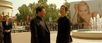 Ce que Niccol met alors en exergue relève de l’évidence : lorsqu’un personnage s’installe ou évolue dans un décor, il y a toujours un arrière-plan « faux » (une toile peinte, un poster géant, un mobilier plus toc que luxueux, un écran de projection…) qui s’impose en tant que contrepoint discret. Prétendre pouvoir recréer un simulacre à l’intérieur d’un autre ne prive pas autrui d’être déjà piégé dans l’un comme dans l’autre – la solitude fiévreuse de Viktor aurait-elle été la même s’il avait pris cela en compte dès le départ ? Au fond, que ce soit dans le studio de cinéma ou à l’extérieur, chacun devient la marionnette de son propre théâtre (ou de celui des autres), piégé qu’il est dans un subterfuge trop gigantesque pour être contrôlé – nombreux sont ici les plans qui enferment Viktor dans un espace trop large – et dans un écrin trop stylisé pour être réel. D’où le fait que la réalisation de Niccol, souvent conchiée (à tort !) pour son esthétisme trop marqué, trouve ici sa plus parfaite justification en traitant le propos et la mise en pratique à la manière de deux silex qui se frottent. On serait même prêt à parier que 95% des spectateurs n’ont pas fait attention au superbe plan d’ouverture, ne voyant en lui qu’une entrée en matière décorative sur fond du Adagio de Barber alors qu’il offre la clé symbolique du film tout entier sur un plateau : par la seule grâce d’un fondu enchaîné entre une jetée déserte (celle sur laquelle sera tournée la dernière scène du premier film de Simone) et une rue déserte d’un studio, tout est synthétisé sur un cadre réel assimilé à une page blanche sur laquelle seul le virtuel au sens large sera capable d’écrire la moindre fiction. Et quand le titre du film apparaît tout de suite après, c’est en surimpression d’un tri de bonbons colorés où Viktor prend soin d’enlever ceux à la cerise – on bannit donc la couleur du danger et de la passion. Difficile d’être plus clair sur ce qui fait tourner Hollywood depuis plus d’un siècle.