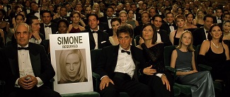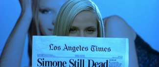 La technologie en tant que diable froid et impitoyable à qui l’artiste vend son âme : c’est un peu ça, l’idée ? Le personnage de Viktor en fait en tout cas l’expérience à partir du second mouvement du film, ne cessant dès lors d’être supplanté par une création si incontrôlable qu’elle paraît moins virtuelle que lui aux yeux du monde entier. Toute tentative de retour en arrière est une impasse. Pire : tout ce qui sonne « faux » passe comme une lettre à la poste sous l’effet d’un aveuglement tous azimuts. Peu importe que ce message vidéo de Simone, projeté en pleine soirée des Oscars au moment où elle est sacrée meilleure actrice, ose plaquer sa posture chic et clean sur un paysage chaotique du Tiers-Monde en arrière-plan – ça ne choque personne qu’un effet spécial soit aussi grossier. Peu importe que Viktor s’acharne ensuite à humilier publiquement sa muse digitale dans un film où il la filme pataugeant sans raison dans une mare aux cochons ou dans une interview télévisée où il lui met dans la bouche de quoi battre le record de débilité d’Afida Turner – ça passera au mieux pour de l’audace ou du franc-parler. Peu importe que l’ultime tentative du créateur de « tuer » sa créature se solde par un double échec – une maladie mortelle aura toujours l’air moins crédible qu’une suspicion de meurtre déguisé à la sauce Natalie Wood et une fausse nécrologie à gros tirage passera toujours pour la meilleure pub qui soit.