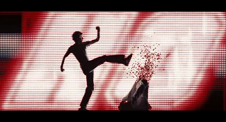 On insiste énormément sur le fait que le kaléidoscope formel de Scott Pilgrim n’a absolument rien de gratuit ou de décoratif. Tous les effets qu’il produit (split-screen en cases de BD, onomatopées graphiques, bascule de format d’image, échantillonnage à l’écran…) sont ici des ressorts narratifs, exploités à des fins psychologiques dès que la scène l’exige. A titre d’exemple, une scène typiquement rattachée à l’esprit d’une sitcom (un garçon rentre chez lui dire à son colocataire qu’il a passé la nuit avec une fille) est ici traitée par le biais du langage de la série Seinfeld : même musique d’introduction, même usage d’une scénographie théâtrale, mêmes rires et applaudissements préenregistrés. C’est par ce genre d’audace que Wright, en plus de prouver sa connaissance parfaite des signes qu’il manipule, surpasse en efficacité et en cohérence le matériau d’origine. Osons un petit comparatif avec celui-ci : si le trait de Bryan Lee O’Malley reste présent au travers de quelques jolis flashbacks BDisés (afin d’éclairer le passé respectif de Scott et de sa promise Ramona), il fait pâle figure devant l’aptitude de Wright à conférer un relief autre que purement plastique à des enjeux aussi basiques. L’aspect formel et rythmique du support BD, lequel encourage le non-dit au travers d’une image fixe et d’un trait minimaliste, a tôt fait de crédibiliser ce qui ne devrait pas l’être. Dans le cas du comic-book Scott Pilgrim vs. The World, O’Malley y trace des esquisses de collégiens freluquets qui, sans crier gare, se battent soudain comme Jet Li ou Donnie Yen, et cela sonne juste parce qu’il s’agit là d’un fantasme enfantin qui se suffit à lui-même. Il n’en va pas de même pour le support ciné, et c’est bien là l’énorme piège dans lequel Wright n’est heureusement pas tombé. En effet, il ne lui faut ici qu’à peine cinq minutes de métrage pour qu’une simple partie de Ninja Ninja Revolution tende à crédibiliser les aptitudes de Scott au combat – chose a priori ardue au vu d’un Michael Cera toujours pas débarrassé de son air de benêt caoutchouteux. Dès lors, se couler dans ce grand bain de folie martiale et graphique ne présente pas le moindre obstacle à l’horizon, puisque c’est la perception du protagoniste, filtrée par tout un vivier de pop-culture mâchée et digérée, qui redessine ici les contours du quotidien.
