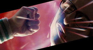 On insiste énormément sur le fait que le kaléidoscope formel de Scott Pilgrim n’a absolument rien de gratuit ou de décoratif. Tous les effets qu’il produit (split-screen en cases de BD, onomatopées graphiques, bascule de format d’image, échantillonnage à l’écran…) sont ici des ressorts narratifs, exploités à des fins psychologiques dès que la scène l’exige. A titre d’exemple, une scène typiquement rattachée à l’esprit d’une sitcom (un garçon rentre chez lui dire à son colocataire qu’il a passé la nuit avec une fille) est ici traitée par le biais du langage de la série Seinfeld : même musique d’introduction, même usage d’une scénographie théâtrale, mêmes rires et applaudissements préenregistrés. C’est par ce genre d’audace que Wright, en plus de prouver sa connaissance parfaite des signes qu’il manipule, surpasse en efficacité et en cohérence le matériau d’origine. Osons un petit comparatif avec celui-ci : si le trait de Bryan Lee O’Malley reste présent au travers de quelques jolis flashbacks BDisés (afin d’éclairer le passé respectif de Scott et de sa promise Ramona), il fait pâle figure devant l’aptitude de Wright à conférer un relief autre que purement plastique à des enjeux aussi basiques. L’aspect formel et rythmique du support BD, lequel encourage le non-dit au travers d’une image fixe et d’un trait minimaliste, a tôt fait de crédibiliser ce qui ne devrait pas l’être. Dans le cas du comic-book Scott Pilgrim vs. The World, O’Malley y trace des esquisses de collégiens freluquets qui, sans crier gare, se battent soudain comme Jet Li ou Donnie Yen, et cela sonne juste parce qu’il s’agit là d’un fantasme enfantin qui se suffit à lui-même. Il n’en va pas de même pour le support ciné, et c’est bien là l’énorme piège dans lequel Wright n’est heureusement pas tombé. En effet, il ne lui faut ici qu’à peine cinq minutes de métrage pour qu’une simple partie de Ninja Ninja Revolution tende à crédibiliser les aptitudes de Scott au combat – chose a priori ardue au vu d’un Michael Cera toujours pas débarrassé de son air de benêt caoutchouteux. Dès lors, se couler dans ce grand bain de folie martiale et graphique ne présente pas le moindre obstacle à l’horizon, puisque c’est la perception du protagoniste, filtrée par tout un vivier de pop-culture mâchée et digérée, qui redessine ici les contours du quotidien.