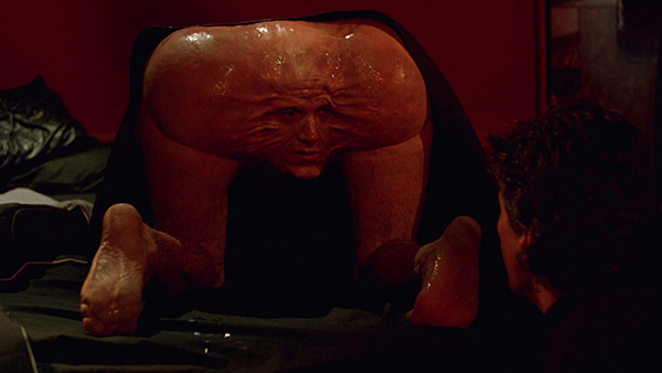 Pour tous ceux qui n’avaient pas revu le film dans de bonnes conditions depuis sa sortie (un DVD honteux à la copie recadrée en 4/3 hantait jusqu’ici les bacs des vidéoclubs), Society restait l’une des œuvres phares du cinéma d’horreur des années 80. Pas forcément un chef-d’œuvre du genre, Brian Yuzna ne s’étant jamais distingué pour ses talents de metteur en scène, mais en tout cas l’une de ces péloches gores et subversives qui galvanisaient un cercle de cinéphiles biberonnés à ce genre de curiosités déviantes. Il n’en reste pas moins le produit d’une époque où la paranoïa ambiante contre les puissants de ce monde faisait pousser de jolies graines sur pellicule. Après avoir longtemps travaillé avec le scénariste Dan O’Bannon sur un projet intitulé The Men, Yuzna en aura finalement repris à son compte l’idée centrale – une sorte de relecture inversée des Femmes de Stepford d’Ira Levin – pour l’injecter dans le script écrit par Woody Keith et Rick Fray, le tout en y mêlant ses questionnements sur le body-horror, le tabou de l’inceste et la peur de la sexualité dans une Amérique libérale qui ne cache rien de sa violence. Il aura suffi d’y ajouter la présence du prodigieux Screaming Mad George pour parfaire l’identité déviante de Society. En effet, on devait alors à ce génie underground des effets spéciaux une approche très décomplexée du gore dont les deux épisodes les plus fendards de la saga Freddy – ceux réalisés par Chuck Russell et Renny Harlin – avaient su récolter les fruits. La fascination commune de George et de Yuzna pour le surréalisme et le caractère charnel de l’horreur allait ainsi donner naissance à une scène finale proprement démentielle, encore aujourd’hui l’une des plus folles jamais pondues sur un écran de cinéma. Mais n’allons pas trop vite…