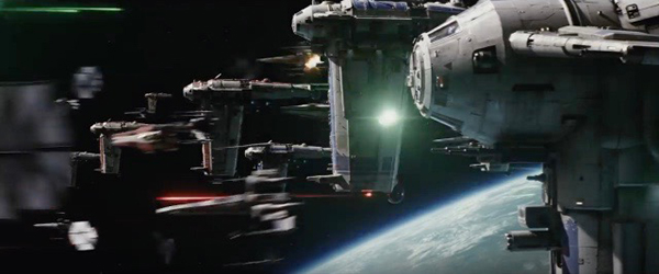Les Derniers Jedi investit ce domaine, tout en se proposant de le réinventer. Le film se résume en un mot : la désillusion. Sous cet angle, on peut considérer le film comme une nouvelle étape dans la destruction du mythe Star Wars soit comme une évolution logique du récit telle l’a été L’Empire Contre-Attaque en son temps. Il n’est guère aisé de trancher puisque le film fournit des armes pour les deux lectures entre références appuyées à son modèle et choix culottés pour représenter sa thématique. Sur ce dernier point, on sent l’apport de Rian Johnson. Dans Une Arnaque Presque Parfaite, il liait les manipulations inhérentes au genre à la caractérisation de ses héros. Il ne procède pas autrement ici. S’il y a un côté décevant dans l’aventure des Derniers Jedi, c’est justement parce que tous les personnages vont connaître la déception. L’enjeu principal de l’épisode tourne ainsi autour de l’alliance rebelle traquée par le Premier Ordre. Mais attention, il ne s’agit pas d’une haletante et grandiose poursuite où on essaie par exemple de semer l’adversaire dans un champ d’astéroïdes. Non, c’est une poursuite où chacun reste à distance raisonnable de l’autre, patientant jusqu’au moment d’abattre la carte maîtresse. Ça n’est pas exactement le type de péripétie prisée par le public. L’œuvre met l’accent sur l’aspect désenchanté de l’aventure, nous laissant comprendre qu’il ne suffit pas qu’un évènement soit central dans l’arc narratif pour qu’il soit grisant. Il y a une sorte de revendication de la lassitude qui se synthétise par ce plan où le général Hux cesse d’observer la flotte à travers la verrière pour se contenter d’hologrammes des vaisseaux.