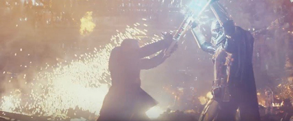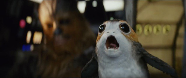 Si Rian Johnson est un narrateur talentueux, il n’en demeure pas moins qu’il a du de toute évidence se conformer aux injonctions du studio. On peut ainsi suspecter que ce ne soit pas lui qui ait décidé qu’à intervalle régulier, Rose ou Finn répèteront qu’il faut dénicher un décrypteur parce que c’est leur mission. Ce genre de leitmotiv tient plus d’une écriture par algorithme, calculant froidement et sans conscience ce que le film a besoin pour être suivi par le spectateur. Et Les Derniers Jedi n’est pas avare dans le recours à cette méthodologie procédurière proposant moins un cheminement émotionnel qu’un paquet cadeaux fourre-tout. On traitera de cette manière les porgs, créatures mignonnes traversant tout le film dans l’unique but d’alimenter sa caution kawaii (les vulptices auront en comparaison une justification minime mais bien présente). En ce sens, on détecte encore dans cet opus la senteur de préfabriqué de son prédécesseur. Le renouvellement d’un schéma rebattu se heurte au flot de clin d’œil confortant une certaine idée de Star Wars. On ne comptera pas le nombre de fois où Rey déclare sentir le conflit en Kylo Ren et à l’inverse, on cherchera désespérément à quel moment John Williams transfigurera ses partitions.
