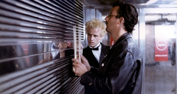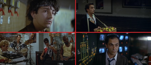Pour le reste, la sensibilité de Besson pour les univers extérieurs au réel trouvait là un écrin de choix quelques années avant qu’il ne s’enfonce dans les profondeurs sous-marines du Grand Bleu : le décor du métro, dont la géométrie très particulière des couloirs et l’allure de « cour des Miracles » contemporaine n’avaient jamais été aussi bien exploitées au cinéma (si ce n’est, vingt ans plus tard et en mieux, dans le génial Kontroll de Nimrod Antal), reflète le désir de ce cinéaste encore jeune (à peine 26 ans pour son second film !) d’investir une terre inconnue pour y trouver un refuge, un repère, un substitut au monde extérieur, dans lequel il pourra y intégrer ses rêves et ses désirs d’artiste (ici, Fred veut former un groupe de rock). En cela, le parcours du protagoniste est presque une variation sur cette démarche (notons que la coiffure peroxydée de Fred est un peu celle que portait Luc Besson à l’époque), mais pour autant, faut-il aussi voir là-dedans l’origine de la naïveté d’enfant qui n’a jamais cessé d’habiter le cinéma de Besson ? Peut-être que oui, après tout. Et c’est finalement assez touchant : d’une part, son exploration du métro parisien se fait sans idée préconçue ni dose de caricature, et d’autre part, son regard sur ses personnages est celui d’un être sensible, attaché à donner vie à des personnages insolites et étranges qu’il parvient à iconiser en à peine deux plans. Il suffit par exemple de voir comment le batteur (Jean Reno) et le fameux Roller (Jean-Hughes Anglade) sont introduits au début du film : au début, on ne voit que leurs pieds (ceux du second ont des rollers), et le plan suivant isole leur action respective (claquer ses baguettes contre le mur pour le premier, glisser sur le bitume pour le second) avant même de cibler leur visage, le tout sous une bande-son qui se branche à leur énergie interne. Du clip ? Non, du cinéma, et du très bon.