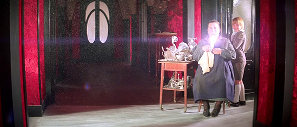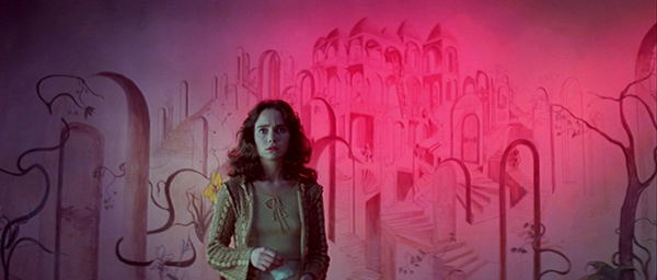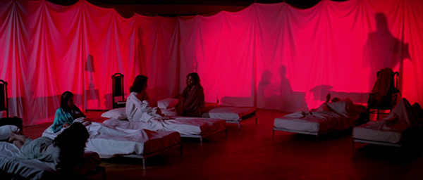 Élaboré à partir des dernières bécanes Technicolor (du moins si l’on en croit les échos), ce fabuleux travail chromatique du chef opérateur Luciano Tovoli n’a pas volé son étiquette de subversion à ciel ouvert. Dans sa relecture démoniaque des couleurs voyantes de certaines illustrations (dont les cartoons de Walt Disney, inspiration première d’Argento), dans son déferlement de jeux de lumière inventifs (personne n’a jamais pu oublier le fameux « plan de l’ampoule »), dans son artisanat inouï pour créer de l’inédit en matière d’effets (Tovoli faisait traverser la lumière par des panneaux de velours qui renvoyant une tache de couleur dense sur le visage des acteurs), dans sa quête de cadrages et de mouvements de caméra qui cassent toutes les conventions de l’époque, la forme baroque de Suspiria n’a toujours pas fini d’exercer une fascination durable sur les cinéphiles. Et on insiste, cette œuvre tout sauf cérébrale ne se limite pas à un simple délire formel. Sans pour autant s’en tenir à une psychanalyse de bazar (laquelle voudrait rattacher le sourire final de Suzy à une découverte de sa propre sexualité) ou à une énième lecture du passage à l’âge adulte (ce qui est le lieu commun de tous les contes !), c’est la couleur elle-même qui invite ici à traverser le miroir. En effet, le bleu s’invite dans les moments de tension silencieuse, le rouge se fait envahissant lorsque l’angoisse terrasse l’individu, et les deux couleurs se mêlent dans un chaos infernal dès que l’horreur débarque, agressive et traumatisante. Une scène mémorable est d’ailleurs à signaler : dans un dortoir inondé de couleurs rouges et garni de draps tendus, un jeu s’organise alors sur les échelles de plan, la respiration sourde de la « Mater Suspiriorum » se révélant en ombre chinoise sur l’arrière-plan et restant invisible pour les deux héroïnes au premier plan (ce qui relève du monde occulte n’est révélé que par l’image). En cela, le simple agencement des plans suffit ici à créer du sens, ce qui demeure l’alpha et l’oméga d’une expérience de cinéma digne de ce nom.