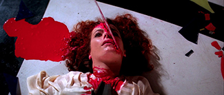 L’ouverture géniale du film, résumable à un torrent foudroyant de sons et de fulgurances graphiques, fait figure de manifeste. Une porte automatique d’aéroport quasiment assimilée par le montage à une lame de guillotine inversée, une symbolique aqueuse mettant en parallèle la pluie qui coule violemment sur une bouche d’égout et l’eau qui s’écoule bruyamment d’un réservoir, l’architecture baroque et organique de certains décors, le thème mondialement célèbre du groupe Goblin qui injecte des râles monstrueux dans une comptine obsédante : tout est mis en œuvre pour évoquer sinon un décalage, en tout cas un sentiment de voir la réalité gagnée par des forces obscures qui hurlent leur présence sans pour autant se dévoiler en tant que telles. La mise à mort qui s’ensuit, dévoilant un sadisme total dans une cascade de cris et de délires chromatiques, suffira de son côté à mettre notre psyché de spectateur un peu sens dessus dessous. Le tout dans des environnements en trompe-l’œil, parfois empreints d’un vrai surréalisme, où chaque micro-détail devient par la force des choses une matière à décrypter (si l’on y tient) et à déguster (il le faut). Que déceler derrière un visage féminin si écrasé contre un miroir qu’il finit par le traverser, dans cette boîte crânienne tranchée sur toute sa diagonale par un épais morceau de verre, ou encore dans cette très étrange verrière multicolore sur le plafond ? Et que dire de cette aberration scénique qui amène des personnages à passer d’un endroit à l’autre sans qu’on sache comment ils ont pu s’y prendre ? Encore un jeu sur les volumes et les perspectives dans un univers qui ne mise plus sur notre suspension d’incrédulité. Seul l’effet de sidération importe face à une matière visuelle et sonore qui s’exp(l)ose et qui s’imp(l)ose, avec un rosso plus profondo que jamais.