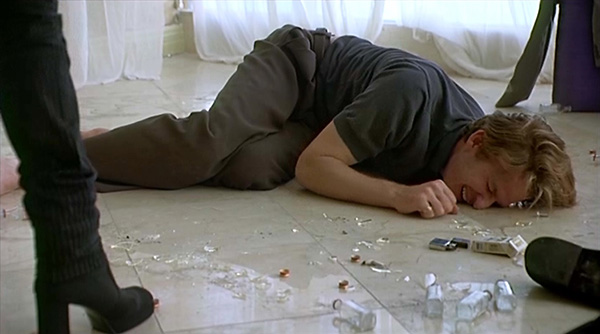 Que faire à présent ? Observer à distance le point de non-retour d’un individu lancé à la recherche d’un fantasme amoureux (une énième image qui n’existe pas) et d’une vérité effroyable (la seule image qui existe) ? La seconde partie du film nous prend à revers en révélant un Ferrara capable d’éparpiller façon puzzle tout ce qu’il a osé installer durant la première, et, plus osé encore, de nous placer dans la même position fantasmatique et faussée que son antihéros. C’est là qu’il convient d’évoquer la seconde incarnation féminine du film, que l’on attendait évidemment en figure glamour et sulfureuse au vu de son statut de mannequin. Et là, surprise, le cinéaste active la désérotisation de Claudia Schiffer en lui faisant jouer l’incarnation de l’amour pur et équilibré pour un Matty en plein processus de rédemption – hélas anéanti par la suite. Juste une envie de dérégler le jeu des apparences ? Trop faible pour un cinglé romantique du calibre d’Abel Ferrara. Comme dans toute fièvre amoureuse régie uniquement par les affects et l’abus de sensations, l’intrigue de The Blackout se met soudain à dériver, à partir en vrille, à user des surimpressions afin d’incarner par l’image et le montage tout le déphasage psychique de Matty. A ce titre, il devient même impossible de juger « mensongère » l’affiche du film, montrant une danse lascive entre Béatrice Dalle et Claudia Schiffer. Certes, les deux actrices ne se rencontrent jamais dans le montage final (il s’agit en réalité d’une scène censurée figurant sur le DVD du film), mais on ne peut qu’y voir une « image » perdue dans un film mental, sortie de l’esprit d’un camé qui nage péniblement dans son délire aqueux. Elle est un fantasme pour Matty, elle doit le devenir pour nous aussi. Et de là naît notre fièvre. Avant que la vision du film dans son intégralité nous renvoie en pleine gueule notre position de drogué, à ce point en manque d’images qu’il peut finir avec la gueule de bois.