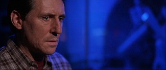Si porte de sortie il y a, elle tient bien évidemment dans le lien qu’il s’agit ici de (re)bâtir entre les scènes et les personnages. Là-dessus, c’est peu dire que le scénario écrit par Nicholas Klein se montre stratégique à souhait. Dans le cas des scènes elles-mêmes, le lien s’opère par le raccord direct. Des exemples ? L’atelier de lecture auquel participe Cat s’achève par sa confession à propos du père qu’elle n’a jamais connu, et la scène d’après montre Ray amorçant un discours sensible avec son père vieillissant (Samuel Fuller, qui décédera peu après la sortie du film). Une petite fille, à qui Ray montre la galaxie d’Orion par le biais de son puissant télescope, pense alors à l’être qui lui manque le plus et qui lui semble tout aussi éloigné que les étoiles – une scène vite suivie par l’intrusion discrète de Mike dans sa propre maison où il observe de loin l’être aimé (qu’il n’a pas revu depuis longtemps) sans jamais chercher à lui signaler sa présence. A une réflexion de Paige sur les émotions et les intentions qui seraient capables d’influer sur la réalité, Doc répond par la théorie des particules selon laquelle ce que nous regardons est perpétuellement destiné à (nous) changer, et tout de suite après, le récit embraye sur une pensée off de Mike qui souligne à quel point ces deux tueurs qui ont failli l’abattre de face ont quelque part contribué à le « changer ». La narration de The End of Violence fonctionne très souvent ainsi : le basculement d’une scène à l’autre opère une prolongation du sujet initial par un écho très direct, quand ce n’est pas chaque nouvelle scène qui se construit comme une démonstration détournée de la précédente.