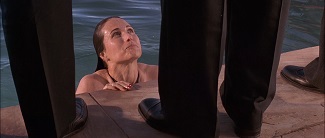 Partir du principe que faire un film en Amérique implique fatalement de faire un film sur l’Amérique est la porte d’entrée idéale de ce labyrinthe sophistiqué. Film sur la violence dans le cinéma hollywoodien, peut-être, mais avant tout captation de la profusion des images dans la société américaine – le périmètre est ainsi plus clair et mieux délimité. Film situé à la Cité des Anges, certes, mais où les anges ne veillent plus sur l’humanité comme dans le Berlin splitté des Ailes du désir – ils ont été remplacés par des caméras qui scrutent et enregistrent les moindres mouvements de la ville. Film sur des personnages qui contemplent à domicile sur leurs écrans toutes les images du monde, et ce à peine six ans après que le futuriste Jusqu’au bout du monde ait filmé des êtres lancés dans un tour du globe pour en ramener des images – le présent de demain a ainsi pris de l’avance sur le futur d’autrefois. Film sur des néo-Mabuse pour qui contrôler l’image revient à contrôler le regard d’autrui, mais au prix d’une sédentarisation totale, immobiles et quasi infirmes qu’ils sont par opposition à ces entités nomades si chères à Wenders. Film sur le réel qui ne se regarde qu’à travers le prisme d’un écran, à ceci près que tout ce qui est ici projeté devient sujet à la déformation : le travail du chef opérateur Pascal Rabaud aboutit pour le coup à un pur kaléidoscope d’images en contrastes, tantôt incroyablement léchées (Wenders tourne pour la première fois en Scope) tantôt volontairement délavées (grain, floutage, brouillage, interférences). Film sur des gens qui sont aussi eux-mêmes des images : aperçus dans des reflets ou à travers des vitres, masqués en partie par des voiles, recouverts de plusieurs couches indiscernables à la manière d’un étrange layer cake, voire même traités comme des hologrammes pixellisés (voir l’affichage des crédits sur fond noir pendant le générique d’ouverture). Bref, dans l’Amérique de The End of Violence, les individus sont soumis au même problème de définition que les images qu’ils regardent. Il y a quelque chose sinon de « mal fini », en tout cas de « pas clair » que l’un des personnages du récit, en l’occurrence la jeune actrice-cascadeuse Cat (Traci Lind), ne cesse d’appuyer tout au long du récit en demandant à ses interlocuteurs de définir telle ou telle chose – une sorte de défi/devinette très Saint-Exupéry dans l’âme.