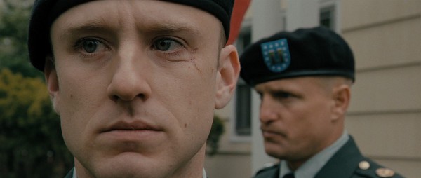 A ce stade attendu où son histoire sort de son rythme répétitif et se noue autour de plusieurs enjeux dramatiques, force est de constater que le film suscite un sentiment partagé : entre l’impression de le voir emprunter des chemins balisés et celle de le voir s’y mouvoir d’une manière agréablement surprenante, principalement par la sobriété qu’il sait globalement conserver. On a, d’une part, l’évolution de la relation entre les deux hommes. Là où l’on redoutait plus que tout le schéma trop éculé de l’apprentissage d’un jeune inexpérimenté auprès d’un mentor qui le malmène et l’écrase, on n’en a finalement que des traces. Face à un Woody Harrelson qui, parfois, cabotine vraiment trop, Ben Foster incarne avec suffisamment de nuances son personnage d’officier, jeune mais déjà confronté à une violence qui en a fait un membre de la même frange de la société américaine que son formateur, celle « qui a vu, qui a connu ». Les deux hommes se révèlent ainsi progressivement être – chacun à sa manière – deux instables, deux frustrés, trimballant leurs séquelles physiques et psychologiques et en manque de chaleur humaine. Avec également le deuxième pan du drame, que constitue la relation entre Montgomery et la veuve jouée par Samantha Morton, cette relation entre les deux hommes soulève progressivement des questions complexes auxquelles le réalisateur n’a bien entendu pas la prétention de répondre de manière tranchée : des êtres qui ont le sentiment de vivre « du même côté » (militaires en service ensemble, vétéran et veuve, mari et femme) parviennent-ils pour autant à mieux communiquer leur douleur ? La fissure que la guerre en Irak a ouverte dans la société américaine, entre ceux qui en ont été directement affectés et ceux qui ne l’ont pas été, peut-elle être refermée (une scène ultra-dérangeante dans un bar saisit remarquablement un tel déchirement) ?