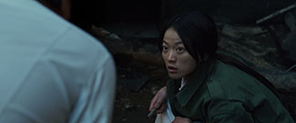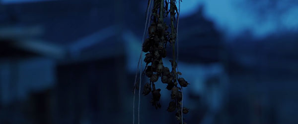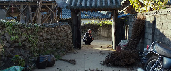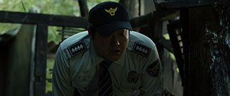 L’inconfort suscité par le film va de pair avec l’expérience viscérale qu’il propose sur la façon d’appréhender l’existence du Mal. Mais à échelle plus réduite, il souligne avant tout le désir de Na Hong-jin de radicaliser cette perte de repères. De cette façon, l’œil du spectateur devient plus attentif, pour ne pas dire carrément omniscient dans des cadres où la richesse du décor nous pousse à tenter d’y dénicher l’invisible. Doit-on s’étonner de voir l’angoisse grimper de façon exponentielle à des moments où le réalisateur se concentre simplement sur l’exposition des décors naturels ? Ces plans d’ensemble du petit village de Goksung – où le silence est roi et où le temps semble se dilater – donnent la clé du récit : l’aube et le crépuscule colorisent un ciel à double visage, où le paradis et l’enfer semblent cohabiter dans un même chaos, et de très légers mouvements de caméra mettent en alerte tout en entretenant une terreur sourde, laquelle ne fera qu’aller crescendo jusqu’à la fin. Lorsque la caméra se focalise sur de petits fétiches végétaux qui jonchent les scènes de meurtre, on a l’impression d’y voir des motifs de têtes de mort. Et dans des scènes qui semblent casser la logique narrative pour mieux épouser les contours d’un cauchemar, le doute reste maximal : il suffit d’y voir un homme aux yeux rouges (on reconnait l’acteur japonais Jun Kunimura) qui menace un chasseur, et de ce plan subjectif qui épouse la trouille de la victime, on bascule soudain à une discussion entre flics, dont un qui regarde la caméra en disant « Ca fait peur, hein ? ». La terreur est alors totale, en effet. Entre le tangible et l’irrationnel, difficile de savoir où le film se situe. Mais patience…