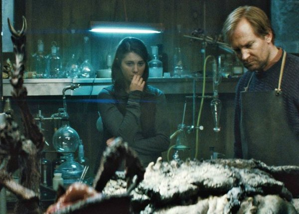 Si on aborde l’orientation initiale du projet, la première chose qui suscite l’intérêt est l’idée d’un casting entièrement constitué de norvégiens. En raison d’un grand public qui fuit comme la peste les sous-titres, on peut se demander comment cet aspect allait être géré. La solution est simple par l’incorporation de personnages américains dans l’histoire. Une facilité pour offrir un point d’ancrage à l’audience mais qui pouvait avoir une influence positive. En effet, la cohabitation de deux nationalités est intéressante par rapport aux systèmes de conflits qui vont devoir naître au sein du groupe. Alors que l’équipe commence à s’interroger sur qui est devenu une chose, ce choc des cultures pouvait devenir un instrument puissant pour établir la tension. Nul doute qu’il s’agit là d’un élément volontairement mis en place par Ronald Moore, Battlestar Galactica ayant longuement étudié les rapports et frictions entre divers clans. Malheureusement, tout ceci semble perdu au fil de piètres réécritures. Cette méfiance vis-à-vis de l’étranger ne voit le jour qu’au sein d’un dialogue et ne sera jamais vraiment exploité. Le problème du film est toutefois plus large puisque le drame de ce The Thing est de ne pas réussir à instaurer le même sentiment de paranoïa que son aîné. Les personnages exposent platement leurs doutes et on n’éprouve fondamentalement aucune peur ou soulagement quant à la révélation sur la nature de l’autre. Il y a par là bien sûr un gros souci de caractérisation des personnages. Chez Carpenter, il suffisait de quelques images pour s’attacher immédiatement à eux. Ici, les personnages n’arrivent pas à vivre et se montrent fade par leur absence de caractéristiques au-delà des stéréotypes qu’ils incarnent. C’est d’autant plus frustrant que le film offre un beau casting de trognes qui ne demandent qu’à avoir un rôle à défendre.