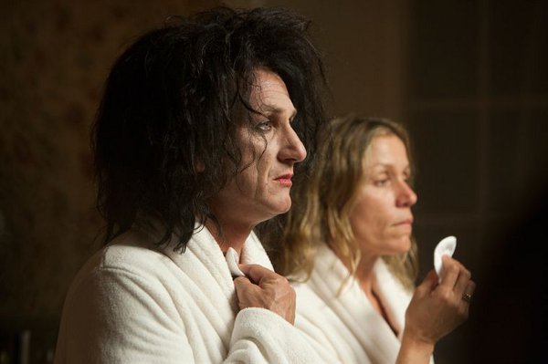 On garde encore en mémoire les plans larges, cadrés au cordeau, et les amples travellings d’Il Divo, Prix du jury au Festival de Cannes 2008, qui se voyaient sans cesse déjoués dans leur solennité par le fait qu’ils replacent toujours au centre de l’écran – et avec une ironie mordante – la même silhouette recroquevillée, le même visage de gnome au teint grisâtre, celui de Giulio Andreotti, Président du Conseil italien ultra-controversé que Toni Servillo incarnait avec génie. Les premières minutes de This must be the Place, quatrième long-métrage de Paolo Sorrentino, de nouveau présenté en Compétition Officielle à Cannes, laissent supposer que le cinéaste convoque ici les mêmes partis-pris de mise en scène. Pourquoi pas, puisque cette fois, son personnage principal est plus étrange encore : imaginez Robert Smith, le chanteur des Cure, la cinquantaine mais le visage toujours aussi fardé et les cheveux noirs toujours aussi emmêlés, qui parlerait avec une voix de fausset et se déplacerait avec une lenteur qui lui donne des airs de vieux zombie. Star du rock à la retraite, Cheyenne (Sean Penn) vit de ses rentes dans un château, en Irlande. Autant dire qu’il s’emmerde un peu : il passe le temps en traînant au centre commercial du coin avec une jeune amie gothique (Eve Hewson, qui n’est autre que la fille de Bono, encore un rockeur) ou en jouant avec sa femme (Frances McDomand) à la pelote dans une piscine qu’ils ont construite mais qu’ils n’ont jamais eu envie de remplir. On s’amuse vaguement de cette description décalée d’un quotidien hors norme, où mari et femme se démaquillent ensemble, le soir, et où elle, pompier robuste et les pieds sur terre, le cadre lui, enfant dans un corps de travesti vieillissant, qui a l’air de planer en permanence.