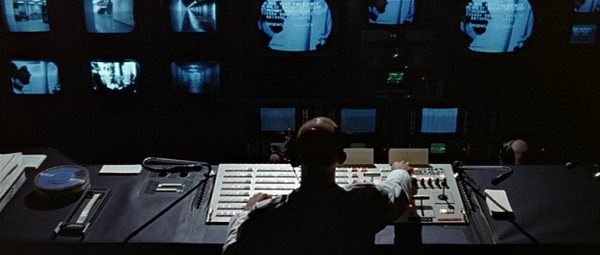 Sans jamais recourir à un trop-plein de gadgets futuristes ni à un schéma narratif trop sophistiqué, Lucas s’en tient à un minimalisme minutieux qui fait constamment mouche. Comme pour appuyer davantage cette idée d’une vue au microscope, ses cadres à la japonaise reposent ici sur un large éventail de plans fixes où chaque petit mouvement dans chaque recoin du cadre tend à casser l’immobilisme de départ, éclairant de ce fait aussi bien la logique que la faille de ce système totalitaire. Le spectateur de THX 1138, faussement manipulé par un interminable charabia technologique dont il ne possède pas la clé de cryptage (c’était le but), est de facto mis à contribution pour guetter le petit détail qui va créer le bug dans le programme. Au premier plan, cela repose sur des détails prégnants que Lucas se plaît à caser de façon aléatoire tout au long de son découpage à des fins subversives, à l’image de cet étrange lézard albinos que l’on voit évoluer au milieu des câbles d’une baie de brassage pendant quelques secondes. A l’arrière-plan, cela tient à de simples choix de perspectives et de triturations sonores, donc à une vraie matrice cinématographique qui joue sur nos perceptions d’une scène ou d’un espace donné. Ne nous y trompons pas : les longues scènes contemplatives du film ne sont donc pas juste des fulgurances visuelles à forte teneur hallucinatoire, ni même un moyen de capter la puissance des espaces vides comme l’avait fait Kubrick sur 2001, mais bel et bien le signe d’une convention qu’il s’agit de briser. La connexion créative que l’on peut éventuellement faire entre Lucas et Godard réside là-dedans : jeu malin sur la multiplicité de supports d’image pour briser nos habitudes narratives les plus confortables, brouillage constant de la musique et du bruitage pour contester l’autorité et l’ordre par les moyens du cinéma. D’aucuns diront que le film manque de structure, qu’il n’est pas totalement poli dans sa narration, qu’il abuse des ruptures et des gimmicks techniques (dont ce compte-à-rebours qui s’invite en gros plan tout au long du récit), que chaque plan paraît autonome au regard aux autres. Ils n’auront simplement pas pris acte de la stratégie diabolique de Lucas. Ce dernier relie l’enjeu de son film à celui d’un dédale que l’on essaie d’architecturer autant qu’on se surprend à infiltrer, d’une expérience de laboratoire que l’on tente de mener tout en étant conscient d’en être l’objet. D’où ce stress mêlé de paranoïa qui surgit au détour de chaque scène, de chaque plan, de chaque effet sonore. Et qui, avec trois fois rien et un cadre non relié au réalisme moderne, se révèle finalement très proche de ce que les cadors du cinéma d’espionnage estampillé 70’s (de Pakula à Pollack en passant par Frankenheimer) auront su refléter par la dimension très alerte de leurs cadres et de leurs ambiances.