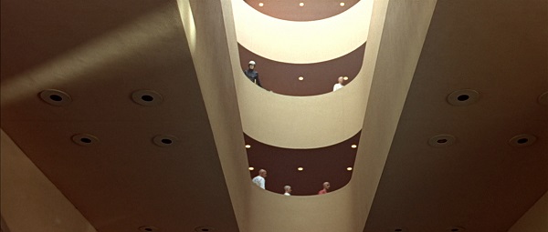 Rappelons que si un film pareil a pu voir le jour au début des années 70, c’est grâce au courage de trois personnes. D’abord les précieux Walter Murch et Matthew Robbins, tous deux camarades d’université de Lucas, qui posèrent les prémices d’une métaphore de la société de l’époque, via le tableau ramifié d’une société de pure consommation, à la fois déconnectée du monde naturel et totalement indépendante. Ensuite l’immense Francis Ford Coppola, si convaincu du génie créatif de Lucas qu’il se décida à faire de ce premier long-métrage la seconde production de sa société American Zoetrope (après Les Gens de la pluie en 1969), tout en se plaçant en intermédiaire entre son poulain et les exécutifs trop intrusifs de la Warner. A l’arrivée, une critique déconfite et un public aux abonnés absents, en dépit de la réaction enthousiaste de certains cinéastes comme Steven Spielberg ou Frank Darabont. Ce dernier n’aura pas seulement déterminé sa vocation de cinéaste en allant voir le film deux fois de suite à sa sortie, mais aura surtout trouvé le terme idéal pour le définir : « science-fiction sociologique ». En gros, prenez un échantillon d’humanité, mettez-là sous un microscope et observez les signes avant-coureurs du futur. Mais surtout, plutôt que de glaner les signes d’aliénation à la surface, il faut ici aller plus en profondeur. C’est ce que le début du film illustre de façon radicale. D’abord en lâchant quelques images de la série kitsch Buck Rogers de 1939 en guise de contrepoint – c’est là le type exact de science-fiction dont le film veut à tout prix se démarquer. Ensuite par un générique de début très inhabituel qui déroule les noms de l’équipe du haut vers le bas, tandis que le compositeur Lalo Schifrin compose une bande-son très inquiétante qui semble accompagner notre lente chute dans un cauchemar indistinct. La suite du récit ne fera que mettre en avant cet écrasement du concret par l’abstrait : une expérience théâtrale et non-théâtrale, dont la bande-son éminemment composite (mélange de nappes musicales et de bruitages technologiques) fait jeu égal avec des dialogues ouvertement cryptiques.