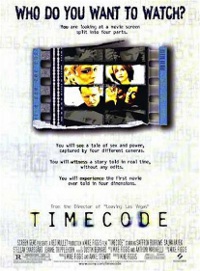 Il y a des jours comme ça, où quelques cinéastes un peu fous et/ou lassés des structures conventionnelles se mettent en tête de changer un peu les choses. En particulier lorsque la lecture du synopsis ne donne pas envie de débourser une poignée d’euros pour aller s’aventurer dans les salles obscures. A première vue, le film de Mike Figgis décroche le pompon sur ce point : une suite de plans-séquences où plusieurs personnages révèlent leur quotidien sans grand intérêt, qu’il s’agisse d’une actrice ambitieuse, d’un producteur volage, d’une lesbienne jalouse, d’une épouse frustrée, d’un flic cocaïné, etc… Raconté comme ça, c’est sûr, ça ferait un malheur chez un petit malin sorti de la Femis désireux de se la jouer « Nouvelle Vague » en filmant du « temps réel » par pur réflexe artistique à la mord-moi-le-nœud. Sauf que le réalisateur de Leaving Las Vegas n’est pas un petit malin. Il est juste malin. Et son idée-maîtresse ne l’est pas moins : découper l’écran de cinéma en quatre partie égales, et suivre en temps réel le déroulement (et le croisement fréquent) de plusieurs sous-intrigues parallèles. Tourné le vendredi 19 novembre 1999 à partir de 15h30, où chaque action fut alors improvisée par le casting à partir d’une structure narrative prédéterminée, Time Code pousse donc infiniment plus loin le procédé du split-screen, généralement utilisé dans le registre du polar ou du thriller (Brian de Palma est passé maître dans le domaine). Mais il s’inscrit aussi (et surtout) dans la lignée de plusieurs processus filmiques qui ont fait leur nid au cours des années 90. D’une part, les règles du Dogme, établies par un collectif de cinéastes danois dirigés par Lars von Trier afin de redonner au 7ème Art sa fonction de témoin objectif du monde : une idée loufoque et finalement plus proche du foutage de gueule, que Figgis reprend à son compte pour en stigmatiser toute la basse prétention en fin de métrage (on y reviendra plus loin). D’autre part, la sitcom sous cocaïne, qui change de point de vue comme de chemise en n’oubliant jamais de s’attarder sur les détails les plus croustillants d’une action, aussi banale soit-elle, et surtout, en s’autorisant les sorties de route les plus incongrues. A ce propos, hasard du calendrier ou pas, la distribution de Time Code dans les salles françaises en juin 2001, qui n’aura pas été si exceptionnelle que prévu, aura été placée sous une aura assez particulière : au même moment, une chaîne hertzienne diffusait un programme à très grand succès d’audience, lui aussi placé sous le signe du voyeurisme en milieu fermé et de l’espionnage de sous-intrigues en temps réel. Son nom ? Loft Story.
