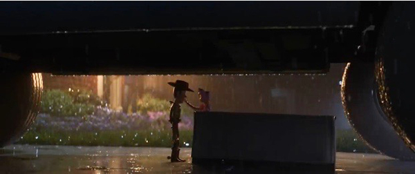 Ce quatrième opus ajoute une donnée inédite dans les relations entre les jouets et leurs propriétaires : le consentement mutuel. Jusqu’à présent, les films nous montraient surtout comment les jouets s’épanouissaient dans leur fonction en aidant au développement de l’enfant. Et si l’enfant n’avait pas besoin d’un jouet spécifiquement ? Non qu’il s’en détourne en grandissant mais qu’il s’en désintéresse simplement car il ne lui apporte pas ce dont il a besoin. Le jouet alors présent n’a plus d’utilité. C’est ce qui arrive à Woody au début de Toy Story 4. Bonnie ne sent pas la nécessité de jouer avec lui et le laisse au placard. Cela pose d’office une grosse problématique vis-à-vis de l’épisode précédent. Dans le troisième opus, on avait vu sans ambiguïté Bonnie accepter Woody et s’amuser avec lui. Or, de la troupe des anciens jouets d’Andy, il n’y a que lui qui sera mis à l’écart et délaissé. Il faut dire que si ce désamour était plus généralisé, c’est tout le côté apaisé de la fin de la trilogie qui aurait été démoli. Josh Cooley ne trouve malheureusement pas de solution à ce dilemme et maintient un choix arbitraire qui sonne donc comme un prétexte pour relancer l’histoire. Ce qui est regrettable puisque la thématique est authentiquement passionnante.