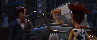 On ne peut donc que déplorer la mise de côté de Forky pendant une grosse portion du film, son importance se réduisant au statut de prisonnier à délivrer. Cela dénote l’écriture bancale guidant le film. On est loin d’une articulation du discours aussi efficace et profondément émotionnelle que dans les épisodes antérieurs. Il suffit de voir comment le caractère glauque de Forky est globalement esquivé. Toy Story 4 a beau distiller son goût pour le cinéma d’horreur, il ramène son monstre de Frankenstein doublé d’un suicidaire compulsif à sa condition comique. C’est un ennui qui revient ailleurs comme avec le personnage de Buzz. Ce dernier est affublé d’un gimmick dont l’exécution pourtant très drôle se montre assez méprisante envers le protagoniste et le rabaisse au rang d’idiot (ce qu’il n’a jamais été hors de ses affabulations de ranger de l’espace). Ce qui est mieux que les autres jouets de Bonnie longuement laissé en plan, faute de leur avoir dégoter quelque chose à faire. Bref, Toy Story 4 souffre de déséquilibre et peine à explorer son histoire selon l’angle le plus pertinent et surprenant.