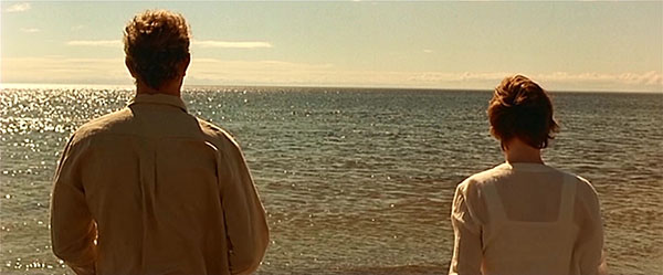 La turbulence promise par le titre sera ici intériorisée, reléguée hors-champ pour mieux laisser perdurer une délicieuse ambiguïté entre science et spiritualité. Jusqu’à son climax tellurique, le film restera calme, planant, fixé sur un microcosme qui paraît toujours coincé dans un état de pause, entre des manques qui persistent et des fêlures qui ressurgissent. Le paysage visité, sorte de petite baie comme il en existe tant au Québec, n’a de son côté plus grand-chose de concret : de par cette marée disparue dont la vision contemplative crée une fascination des plus croissantes, le décor plante le mystère jusqu’à finir par l’incarner. Et surtout, le personnage central du film n’est pas celui que l’on croit, puisque l’eau s’offre ici le plus beau rôle, à savoir celui du suspect. Omniprésente à l’écran (sueur, bouteille, aquarium, Canadair, robinet, piscine…), symbole à part entière qui agit sur les sentiments et accroît l’humidité de l’atmosphère, elle incarne moins les fluides du titre que leur fantôme. Elle devient un miroir de ces peurs et de ces émotions qui ne sont ni quantifiables ni prévisibles, tandis que le sable de cette immense plage se veut un écho clair à l’assèchement de la personnalité d’Alice (parfaite Pascale Bussières). La mer et la terre, deux espaces ici éloignés l’un de l’autre pour une durée indéterminée, et que même les Canadairs qui balayent le ciel à intervalles réguliers ne peuvent inciter à rapprocher.