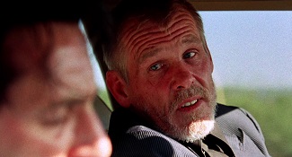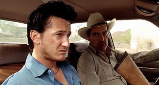 Le héros du film, Bobby Cooper (incarné par un extraordinaire Sean Penn), est ainsi moins un personnage à part entière qu’une surface toujours plus malmenée et détruite. Il est facile d’y voir un miroir déformant de Stone tel qu’il se projette sans doute au sein de la famille hollywoodienne – un « truand » sans envergure condamné à rembourser sa dette à des « mafieux » qui ont le bras long – qu’un jouet enchaîné au bon-vouloir d’un destin quasi mystique. A peine ce loser ouvre le film en traçant sa route en plein désert de l’Arizona, on le devine déjà condamné, cadré par l’abus de décadrages, désorienté par mille faux raccords et axes contradictoires. Sans parler de ce décor originel du western, d’entrée souillé par un générique qui en rature la carte postale à force d’y griffonner ses titres et par une matière symbolique que l’on sait capable d’influer sur l’intrigue – plan gorasse de vautours qui déchiquètent en gros plan les entrailles encore chaudes d’un coyote. La spirale est d’ores et déjà tracée. Pas d’espoir qui pourrait briller, juste une poire qui va brûler. La faute à qui ? La faute à quoi ? D’abord à une foutue durite qui pète en plein cagnard, et qui pousse hélas ce pauvre Bobby à faire une halte à durée indéterminée dans la petite ville voisine de Superior. A partir de là, rien de moins que des emmerdes à la pelle, incarnées par une galerie de personnages hauts en couleur. En vrac : une femme fatale en jupe courte (Jennifer Lopez), un promoteur immobilier au sang chaud (Nick Nolte), un shérif louche en voiture (Powers Boothe), une petite frappe parano-maso (Joaquin Phoenix), une pin-up trop saute-au-paf pour être honnête (Claire Danes), un Indien aveugle qui se la joue philosophe (Jon Voight), un garagiste crasseux et véreux (Billy Bob Thornton), sans oublier deux braqueurs crétins qui réduisent accidentellement en poussière le gros magot que Bobby devait rendre à ses créanciers. A chaque rencontre – nouvelle ou répétée – avec cette faune visiblement née sous le signe du Scorpion, toujours la même mécanique visant à reléguer Bobby au rang de pantin ironique, si malchanceux et acculé par le champ lexical complet du grain de sable que celui-ci lui enraye fatalement les neurones. Presque un jeu cruel et décalé au sein d’un genre dont toutes les figures centrales, au premier abord, sont parfaitement identifiables.