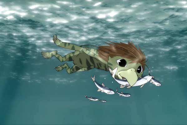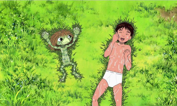 L’adaptation progressive de Coo à sa nouvelle vie constitue le premier segment narratif du film. Car comme tout été, celui-ci est fait d’épisodes divers marquant à leur façon la vie de tout un chacun. Keiichi Hara le traduit littéralement en s’attardant longuement sur quatre périodes significatives dont nous serons témoins. Passée la connaissance avec le kappa, faite avant tout de moments familiaux que le réalisateur évite de faire tomber dans une niaiserie qu’il frôle tout de même par instants, Un été avec Coo nourrit les thématiques présentées en intro. A travers la recherche, que l’on sait perdue d’avance, des kappas encore en vie, le film propose un double cheminement initiatique : celui de Coo en premier lieu, lui qui court après ses racines pour retrouver sa vie d’autrefois. Il devra apprendre, dans la douleur, à abandonner tout espoir. Pour Kôichi également : lui qui était le seul de son groupe d’amis à ne pas voyager, quitte pour la première fois la maison, seul, et s’émancipe du même coup de la protection excessive de sa mère. De cet enrichissement commun naîtra l’une des plus belles scènes du film, ainsi qu’un attachement définitif à des personnages dont la relation n’est pas sans faire penser à ceux du E.T de Steven Spielberg.