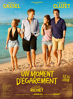 Si l’on veut admettre qu’il n’a pas grand-chose à voir avec ce que l’on devrait attendre d’un film de Jean-François Richet, comment définir Un moment d’égarement ? Comme un simple film-hommage chapeauté par Thomas Langmann, fils de Claude Berri avant d’être producteur de la chose ? Comme un énième girl-movie sur lequel on sent planer l’influence grandissante de Lisa Azuelos comme coscénariste ? Un peu des deux. La patte Azuelos permet déjà une réactualisation intelligente des curseurs sociaux et générationnels posés par le film original. On pouvait avant voir chez Jean-Pierre Marielle et Victor Lanoux deux beaufs finalement déboussolés par le désir féminin autant que par l’évolution des mœurs. La nouveauté, c’est que Vincent Cassel et François Cluzet rejouent ici cette partition avant même que la scène-pivot ne vienne poivrer leur amitié : ces deux pères – un papa cool déjà divorcé et un quinqua bobo en pleine pause conjugale – ne sont plus en phase avec leurs filles respectives et leurs préoccupations. Collées à leur smartphone ou coupées du monde extérieur sous l’effet du MP3, Marie (Alice Isaaz) et Louna (Lola Le Lann) servent ici à dessiner un vide intergénérationnel, de la même façon qu’Azuelos avait su capturer le hiatus ado/parent dans LOL. Pour elles, seuls comptent le frisson du moment, la pulsation à épouser et le fantasme inavouable à concrétiser. Pour le père joué par Cassel, qui semble encore enclin au lâcher-prise – il faut le voir gesticuler sur du hip-hop avec sa fille – en plus de ne pas faire son âge (on a du mal à croire que l’acteur frôle la cinquantaine !), tout tient dans un dilemme : accepter l’interdit par désir de répondre à l’appel de l’inconnu ou le refouler par pur réflexe moral ?