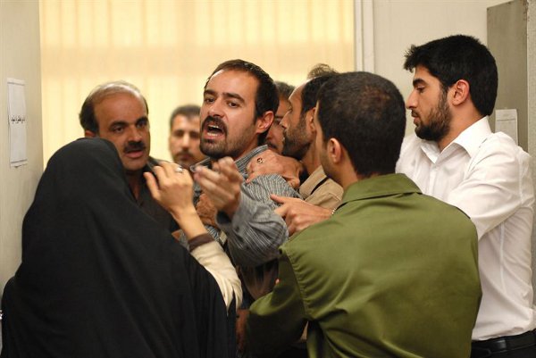 Tout est posé dès la saisissante introduction. Nader et Simin « négocient » leur potentiel divorce avec un juge. Nader refuse de suivre sa femme au Canada et de laisser leur fille Termeh, collégienne, partir elle aussi. Non seulement il s’agit de convaincre le juge d’accorder le divorce, mais les comptes continuent de se régler entre époux face à leur interlocuteur que nous entendons en voix-off mais dont nous occupons la place, de sorte que, en un plan-séquence fixe et saisissant, les acteurs, troublants de naturel, s’adressent à la caméra – à nous donc. On ne pourrait être mieux placé pour les voir se déchirer sans même oser se regarder, pour surprendre les moindres gestes qui trahissent leurs pensées, leurs sentiments. Nader, droit sur sa chaise, paraît déjà ne plus considérer celle qui fut sa conjointe pendant près de quinze ans que comme une lâche, une honte pour le pays dont elle veut fuir la dureté plutôt que de faire face. Il faut bien un motif à ce départ : la vie est intolérable avec « la situation actuelle », dit la jeune femme. « Quelle situation ? » lui demande-t-on. Dans le silence qui suit, Farhadi saisit, déjà, cette même force puissante qui cadenassait les vies des jeunes gens d’A propos d’Elly. Appelons-la tradition. Ou dictature. Si le cinéaste pose si tôt dans son métrage ce poids aliénant du contexte qui dicte aux personnages leurs réactions, c’est qu’il ne s’agit plus, comme dans son précédent opus, de le dévoiler progressivement, sous les apparences du quotidien plutôt tranquille de ces Iraniens de classe moyenne citadine (même les foulards de plusieurs personnages féminins laissent voir bien plus de mèches de cheveux que ce à quoi nous fait nous attendre l’image un peu simpliste que l’on a des mœurs iraniennes aujourd’hui). Ce poids est évoqué entre les lignes mais présent comme un personnage à part entière, qui ferait le lien entre certains protagonistes et catalyserait la séparation d’autres.
