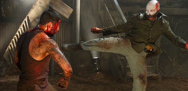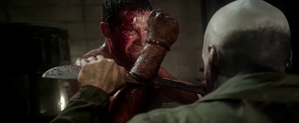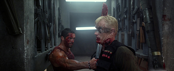 Au milieu d’un tel déferlement d’ultra-violence, d’audaces et d’expérimentations en tous genres, on en oublierait presque que Le Jour du Jugement répare toutes les erreurs de ses prédécesseurs sur le terrain de l’action. En effet, cette fois-ci, non seulement la mise en scène ultra-maîtrisée de John Hyams est mise à profit pour filmer des combats aussi lisibles que parfaitement découpés, mais surtout, le réalisateur monte de plusieurs crans sur l’échelle de la brutalité. Action tournée en plan-séquence où les cadavres ne se comptent même plus, gunfights très sanglants, bastons d’une sauvagerie scotchante, affrontements à la machette, décapitation à coups de batte de baseball : la violence extrême du film atteint des proportions parfois démentielles. Par ailleurs, le très agile Scott Adkins fait preuve d’une martialité insoupçonnable, le monolithique Andrei Arlovski élève un peu plus la brutalité dont il faisait déjà preuve dans l’opus précédent, et même les prestations respectives de Van Damme et Lundgren, tous deux aussi parfaits dans l’action que dans l’interprétation, achève de nous laisser avec des yeux exorbités lorsque le film s’achève. On ne saura toutefois pas dire avec certitude si cette proposition de cinéma tient de l’inconscience absolue, d’un coup de génie passager ou d’une réelle exigence artistique (à vrai dire, on miserait plus sur un croisement entre les trois possibilités), mais en attendant, savourer une surprise aussi massive suffit à combler toutes les espérances des cinéphages et à reprendre espoir envers un cinéma de genre toujours propice à de nouvelles directions. On n’en attendait strictement rien, et au final, on bouffe les racines avec les dents, mais surtout avec la joie immense de constater que, parfois, reconnaître ses erreurs peut être une source de satisfaction.