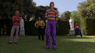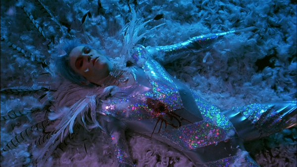 Dans son ensemble, Velvet Goldmine se fragilise de plus en plus parce qu’il reste trop gourmand, saccadant parfois son montage de cassures narratives assez décoratives (dont une chanson entière de Brian Slade déclinée sous la forme d’un clip dandy) ou de ruptures oniriques à la Gregg Araki (de la pluie de paillettes sur les corps des amants à l’apparition d’une soucoupe volante façon Mysterious skin). A l’inverse, il offre parfois des idées intéressantes, comme cette relecture du coup de foudre entre Curt et Brian au travers d’un tandem de poupées Barbie « glamisées » avec lesquelles joue une petite fille invisible à l’écran. Todd Haynes semble s’amuser avec son sujet tout comme il cherche coûte que coûte à renouer avec son vertige, quitte à tout miser sur ce qui peut surgir dans son cadre, images et sons compris. Mais tout ceci rencontre parfois un vrai blocage, parce que trop axé sur une boulimie sans affect. De quoi justifier l’avertissement lancé en ouverture du film : « Même si ce qui suit est une fiction, il faut monter le volume ».
