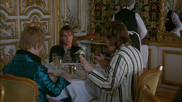 C’est la première idée du film : faire de chaque témoignage un flashback qui agit sur Arthur comme une madeleine de Proust, le plongeant (et nous avec) dans un éventail de scènes tour à tour fantasmées ou véridiques, les unes se mêlant très vite aux autres au gré du découpage. Des réminiscences dont les personnages de Brian et de Curt se font les incarnations parfaites : dès sa première apparition, le premier évoque l’excentrisme de David Bowie (sans parler du look spatio-kitsch de son personnage de scène à la Ziggy Stardust), et plus tard dans le récit, l’hystérie rageuse du second, présenté comme un rockeur drogué et destroy, élabore un drôle de croisement entre Kurt Cobain et Iggy Pop. Même les chansons et les musiques ne sont pas sans évoquer des réorchestrations de morceaux existants. Le film tout entier est à l’image de ce qui semble habiter l’esprit d’Arthur, fan extrême avant d’être journaliste : une duplication sensitive d’une époque révolue autant qu’une pure chanson de gestes et d’attitudes, chacun(e) étant décliné(e) « à la manière de ». En soi, c’est une force, tant le film arrive à faire revivre un espace-temps aussi fou et décadent, mais c’est aussi une faiblesse, pour ne pas dire un excès de zèle, tant le cinéaste se laisse parfois dévorer par sa fascination, finalement réduite à du vent lorsque le scénario évolue vers des terrains moins joyeux.