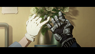 La question de la survie du major, aussi essentielle soit-elle dans le cadre de l’intrigue, n’est donc pas ce qui intéresse Kyoto Animation dans l’absolu. La révélation de son existence se fera donc le plus naturellement du monde, sans tambour ni trompette (et sans violon du coup, hin hin), par le biais d’une courte séquence intégrée au récit. Car oui, Gilbert est toujours là, comme une évidence que l’on espérait et redoutait à la fois, partagés que nous étions entre l’envie que Violet retrouve son Amour et l’improbable revirement narratif que cela pouvait représenter.