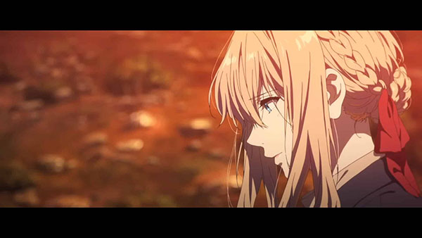 L’intention de Taichi Ishidate, réalisateur de la série, de cet épisode en particulier et également du film qui nous intéresse aujourd’hui, était pourtant tout autre. Par l’intermédiaire du sourire de Violet – une première dans la série ! – Ishidate nous mettait face à une jeune femme ayant achevé son éveil aux sentiments. Ce sourire n’est donc pas adressé à un personnage, mais au spectateur lui-même : c’est lui, l’occupant de cette maison faisant office de destination finale au parcours intérieur de Violet. Un échange de regards symbolique et émouvant qui nous laissait contempler l’humanité, enfin retrouvée, du personnage qui s’est construit devant nous pendant treize épisodes. Logiquement, aucun des deux longs-métrages qui suivra ne refera donc mention de cette courte scène.