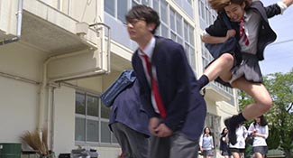 Dès son ouverture, entre branlette fiévreuse, rêves érotiques à base de jolies pépées en tenue légère et dîner hautement zarbi avec deux adultes qui enfilent les mimiques salaces comme des perles, le ton semble donné : du trash à gogo, certes, mais surtout un joyeux prétexte nippon ni mauvais à chatouiller les pulsions perverses du spectateur en épuisant le stock de lingerie fine dans chaque raccord de plan. La sensation d’investir un univers déjanté où l’obsession sexuelle régirait toute forme d’attitude sociale touche ici au faramineux : gros plans sur le décolleté en sueur d’une lycéenne en plein rêve érotique, érections brutales avec le coup de fusil en fond sonore, enseignante dominatrice qui interdit les jupes trop courtes dans le lycée pour rester la plus sexy, barman lubrique qui semble vouloir faire une partie d’Air Guitar avec son service trois pièces, sublimation ralentie de la pluie qui révèle le dessous des chemises blanches, fétichisme lesbien de la poupée Barbie, visite des vestiaires féminins, ritualisation insensée du processus de masturbation (la main droite et le mouchoir sont des « partenaires »), sextoys en rafale (dont un Tenga utilisé par télékinésie !), multiplication des symboles phalliques dans les espaces publics (du concombre à la banane en passant par le levier du flipper et la queue de diplodocus, tout y passe !) et des photos cochonnes sur les murs, cours d’histoire métamorphosé en cours d’éducation sexuelle (« Devenez durs ! », dit l’enseignante en faisant gigoter son double airbag), intermède musical qui taquine soudain les Sex Pistols sur leur répertoire, etc… Voilà, voilà… Bienvenue au Japon.