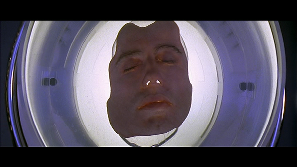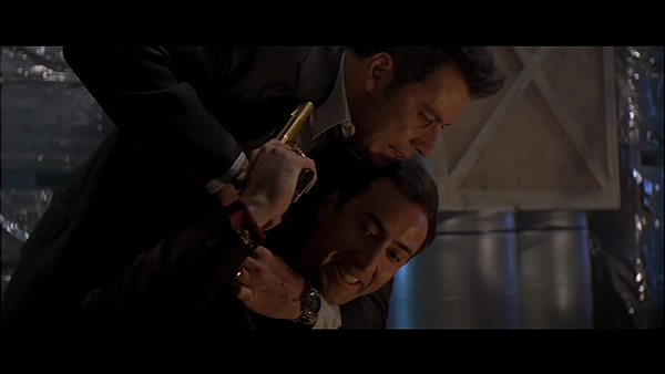 Notre réalisateur hongkongais préféré aime donc les choses simples mais pas les traitements simplistes. Si Woo est un sentimentaliste, ça ne veut pas dire pour autant qu’il réalise les plus pathétiques des mélodrames. On pourrait pourtant se laisser berner en ce sens par ses visions disons over-the-top. Woo est un artiste de la surenchère et ne peut s’exprimer pleinement qu’au travers de l’exagération. C’est par ce seul moyen qu’il est à même d’emmener ses thématiques vers des territoires insoupçonnés. En ce sens, il est pratiquement impossible de revoir un long-métrage comme Volte/Face par petits morceaux. C’est un film à regarder de bout en bout ou pas du tout. Débarrassé du sentiment d’immersion offerte par la réalisation, une lecture fragmentaire nous pousserait à analyser chaque image de manière pragmatique. On ne peut alors que s’alarmer face à plusieurs points. Est-il normal que Nicolas Cage fasse autant de grimaces ? Pourquoi le cinéaste est-il à deux doigts de filmer en gros plans des doublures qui ne ressemblent absolument pas aux acteurs principaux ? Toutes ses invraisemblances sont-elles bien convenables ? Volte/Face ne peut se savourer par le détail mais pour la globalité de sa construction. C’est comme se concentrer sur un tableau. Si on regarde de trop près, le trait apparaît grossier et ça ne ressemble guère plus qu’à un amas de couleurs assemblé sans talent. Mais si on voit le tableau dans son ensemble, tout prend un sens et on ne peut qu’être ébloui par ce qui a été accompli.