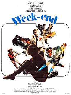 « Week-End, je ne sais pas comment le présenter… C’est un film qui déplaira sûrement à la majorité des spectateurs… Parce que c’est très méchant, grossier, caricatural. C’est fait dans l’esprit de certaines bandes dessinées d’avant-guerre. C’est plus méchant que Hara-Kiri, ça rappelle un peu Pim Pam Poum. C’est plein de sang et d’injures, comme Les Carabiniers. Et je pense que, pour les mêmes raisons, ça ne marchera pas »